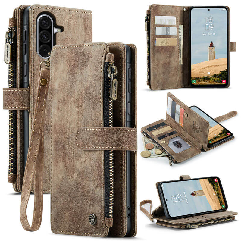 CaseMe Samsung Galaxy A17 Zipper Wallet kickstand Magnetic Leather Case with Wrist Strap: