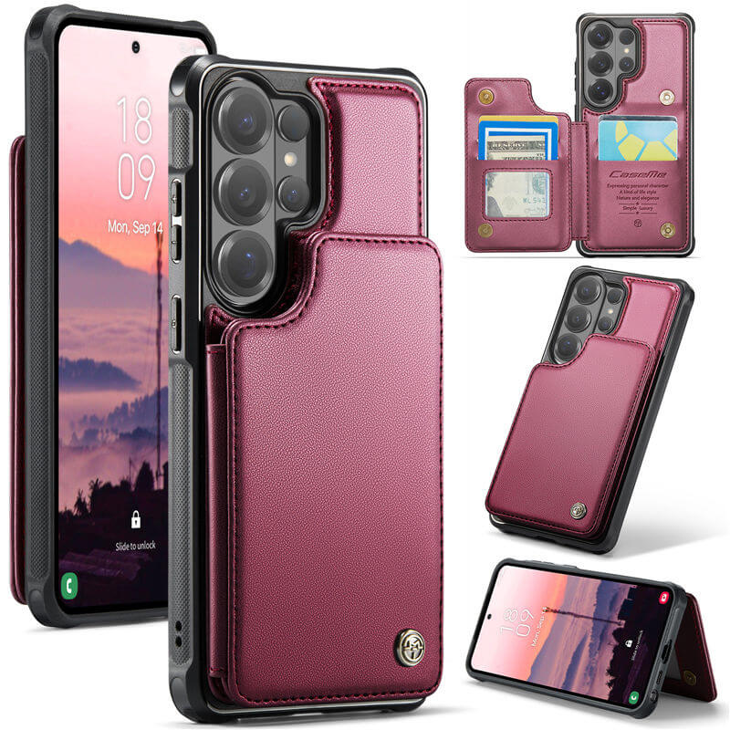• CaseMe Samsung Galaxy S26 Ultra RFID Blocking Card Holder Case with Kickstand Red
