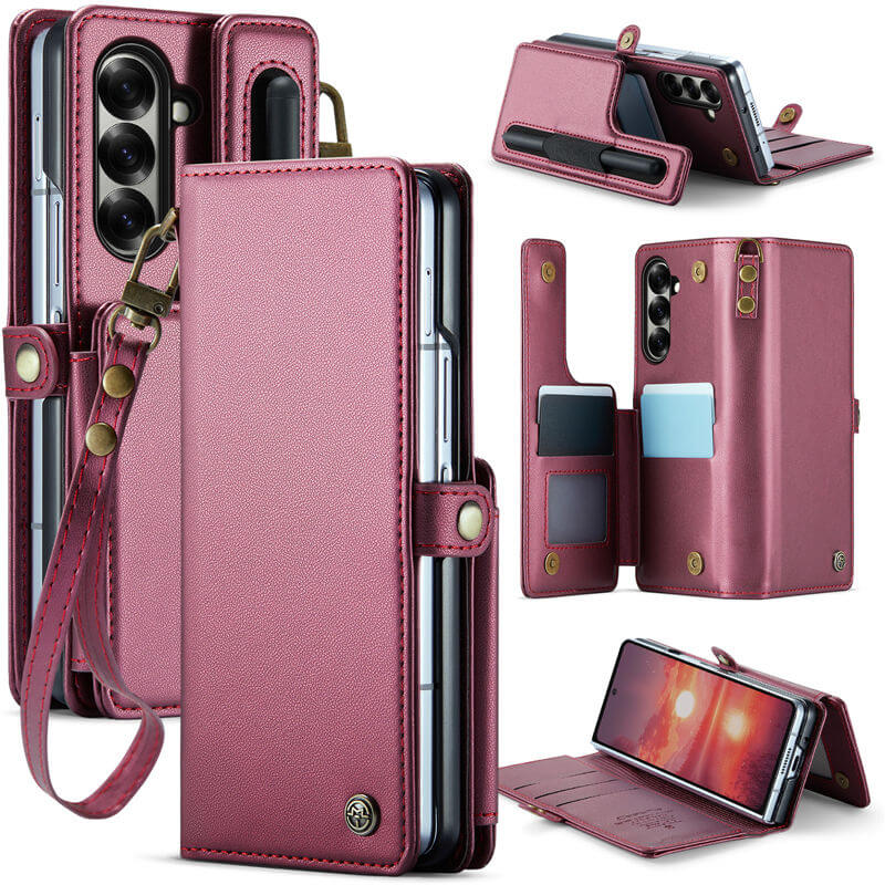 CaseMe Samsung Galaxy Z Fold7 Wallet RFID Blocking Card Holder Kickstand Leather Case with Wristlet: