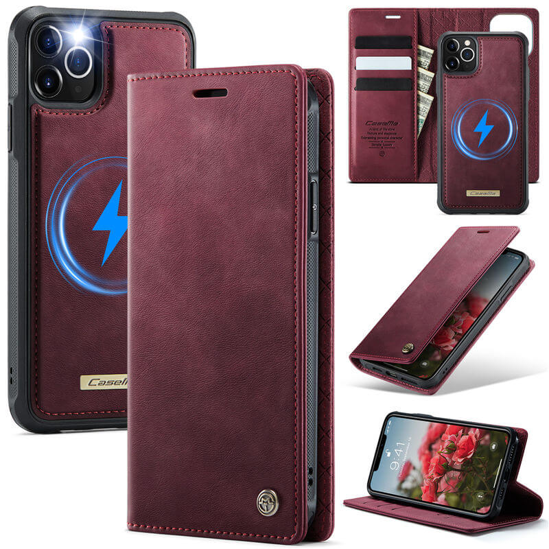 • CaseMe iPhone 12/12 Pro 2-in-1 Magnetic Wallet Case – Wireless Charging & RFID Blocking Red